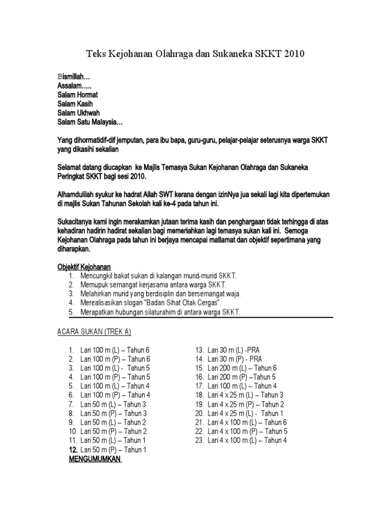 Dapatkan teks pengacara majlis di sini. Pergi ke pasar membeli ikan, ikan dimasak diatas bara, selamat datang kami ucapkan, ucapan bismillah pembuka acara. Koleksi teks pengacara majlis has 878 members. Cikgu share 1.0 pengacara maljis protokol skrip mc teks ucapan koleksi teks/skrip pengacara majlis untuk pelbagai majlis di sekolah (versi bi disediakan). Assalamualaikum w.b.t, salam sejahtera, salam 1 malaysia.